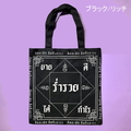 レトロなフォントのタイ文字と魔術を連想させるデザインが不思議なムードを漂わせるトートバッグ。さてさて、何と書いてあるのでしょうか。ブラックは「リッチ、富豪」、ホワイトは「試験必勝」。どちらもストレートな表現が潔いですね。神秘的な雰囲気を演出しつつ、こっそり運を引き寄せちゃいましょう。