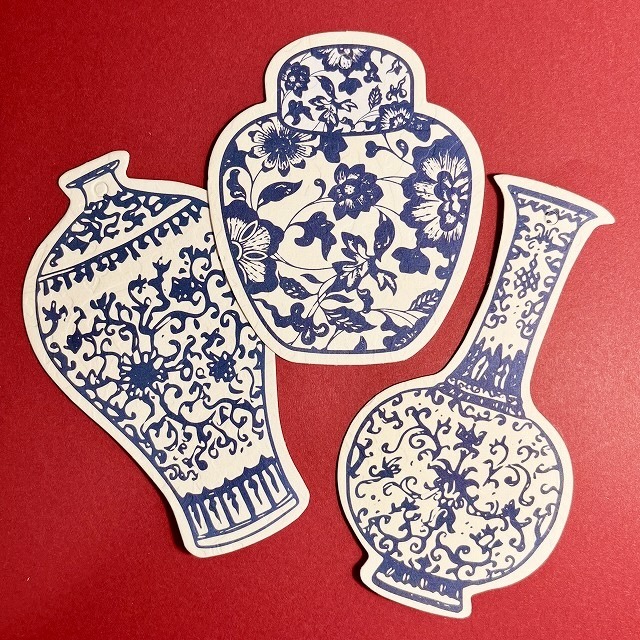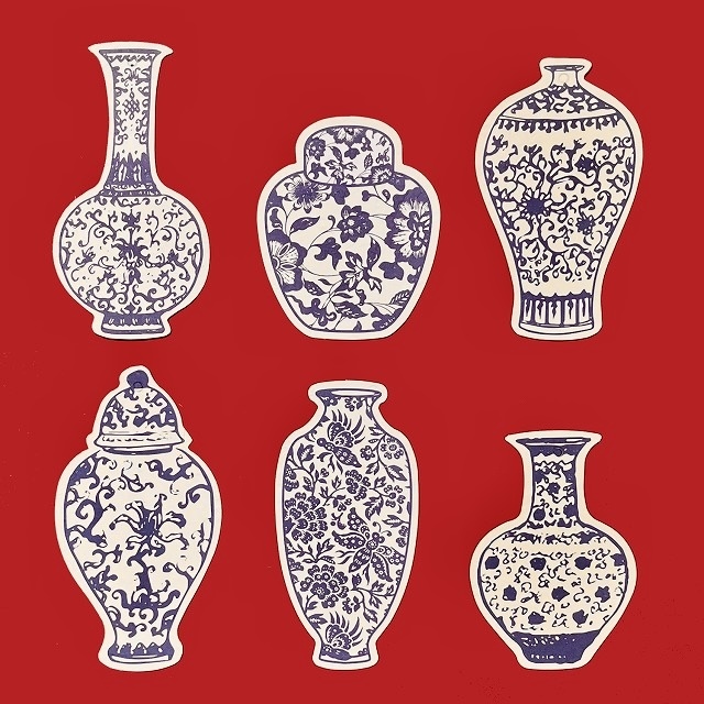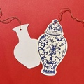 中国磁器を模ったシノワズリ風のメッセージカード。紐を付けてギフトタグ(大きめです)にもどうぞ。6種各2枚、12枚セットでの販売です。※紐は付属しておりません。