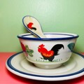 アジア飯定番☆おんどり柄のボウル/プレート/れんげ3点セット[tableitems-339]