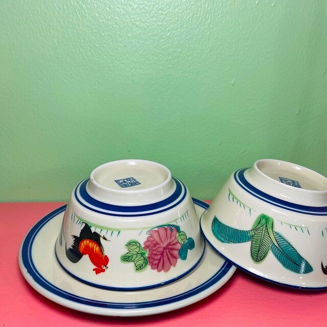 香港や広東、東南アジアでは定番のおんどり柄の食器セット。絵柄のおんどりは勤勉や繁栄を意味し、サイドの牡丹の花は富貴、バナナの葉は長寿を象徴しているとのこと。つまり吉祥モチーフ全部載せです。既に当店でもお馴染みのおんどりアイテムですが、今回の陶磁器食器はボウル、お皿、れんげの三点セット。アジアンスイーツはもちろん、中華粥やスープの器にもどうぞ。プレートは単品でもご使用になれます