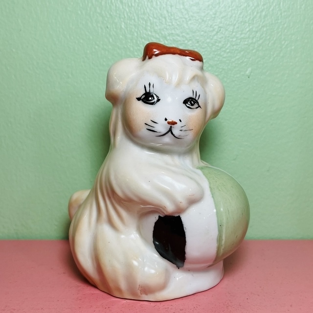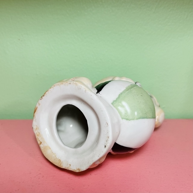見ていると力が抜けてしまいそうになるほど愛らしい、80sデッドストックの貯金箱。もの言いたげな表情でこちらをジィッと見つめてくれます。貴方の毎日に寄り添い、優しく癒してくれそうなほんわか系のわんこですが、実は中国陶磁史において名高い「陝西省の耀州窯」で作られた由緒正しい子。よく見ると毛並みは艶やかで美しく、全体のフォルムもどことなく洗練されているような。底蓋は付いていないので、本気でお金を貯めたい方にはあまりオススメはできません。
