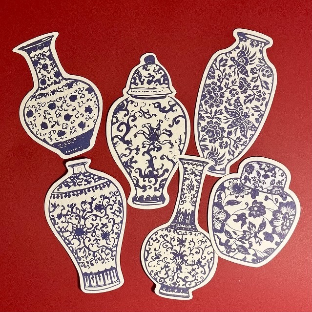 中国磁器を模ったシノワズリ風のメッセージカード。紐を付けてギフトタグ(大きめです)にもどうぞ。6種各2枚、12枚セットでの販売です。※紐は付属しておりません。