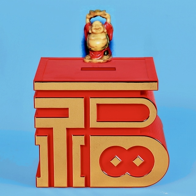 福文字レッド貯金箱/再入荷[deco-253]