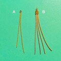 アクリル製のランタンビーズとメタルフリンジを組み合わせてピアスにしてみました。メタル製のフリンジパーツは2本のモノと4本(右)のモノの2種類。4本の方がゴージャス感強めです。チャイナ風以外のパーツにもどうぞ。一点の価格です。